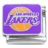 NBA Lakers Basketball Italian Charm. Enamel emblem soldered to a standard 9mm stainless steel link compatible with other major Italian charms.