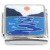 Lake with Sun Italian Charm. Standard 9mm link with enamel soldered to high quality stainless steel. Compatible with other brands of Italian Charms.